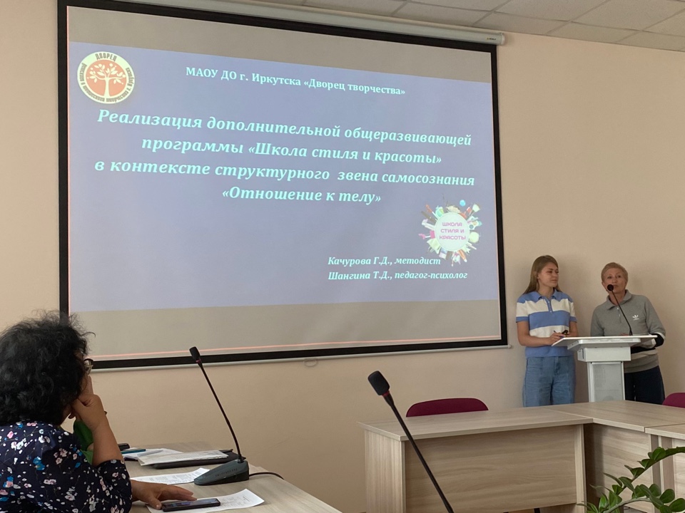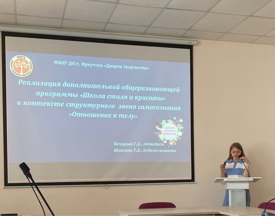 Качурова Галина Давыдовна и Шангина Татьяна Дмитриевна представили опыт работы по реализации дополнительной общеразвивающей программы «Школа стиля и красоты» в контексте структурного звена самосознания «Отношение к телу», отличительной особенностью которой является формирование физического «Я». Программа опирается на понимание приоритетности воспитательной работы, направленной на понимание подростком соотношения внешнего и внутреннего, проблем «личность и внешность», подросток в процессе продвижения рассматривает внешний облик человека, как форму проявления его внутреннего субъективного мира. В докладе были представлены результаты исследования учащихся творческого объединения «Школа стиля и красоты» по оценки уровня удовлетворенности собственным телом.