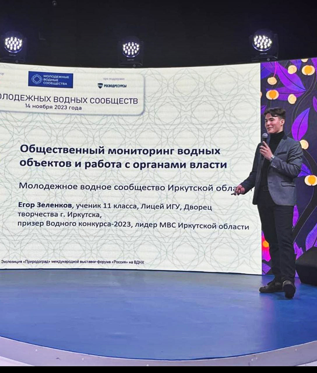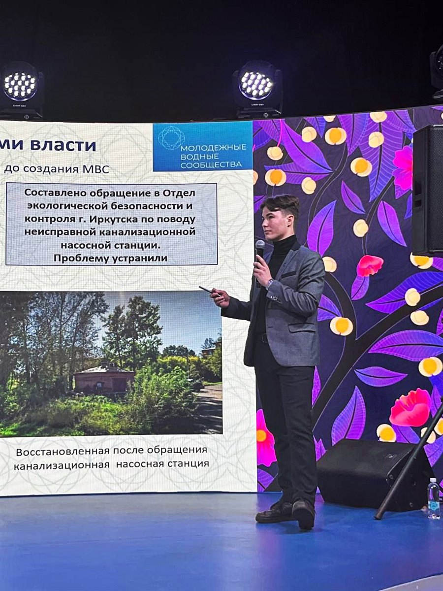 Учащийся объединения «Экологическое проектирование» Дворца творчества Зеленков Егор, как лидер молодёжного водного сообщества Иркутской области, представил на форуме опыт работы на тему: «Общественный мониторинг водных объектов и работа с органами власти», руководитель Зеленкова Наталья Александровна.