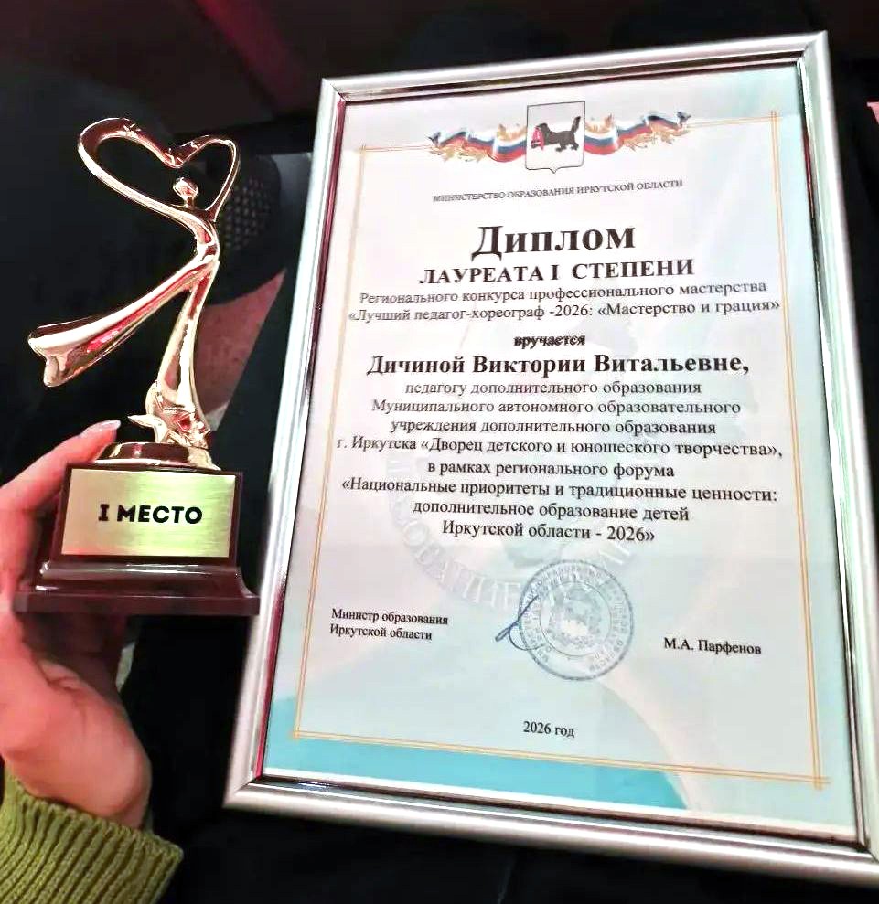 Поздравляем Дичину Викторию Витальевну с заслуженной победой в Региональном конкурсе профессионального мастерства "Лучший педагог-хореограф 2026 "Мастерство и грация"!