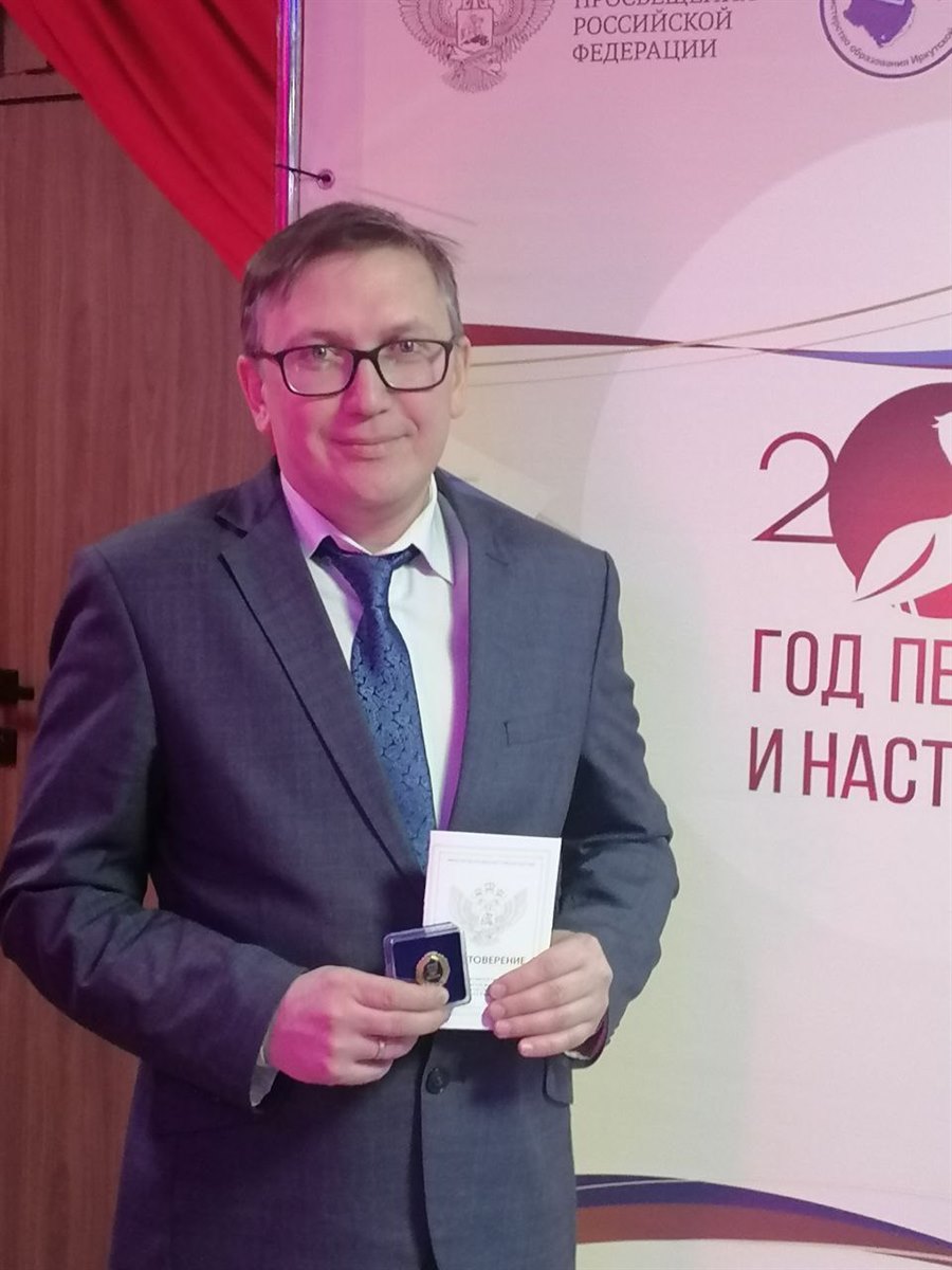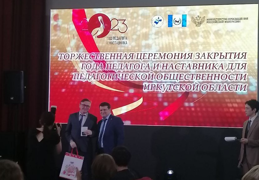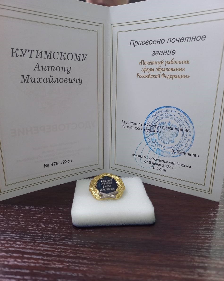 26 декабря 2023 года в Байкал Бизнес Центре города Иркутска состоялась церемония закрытия Года педагога и наставника в Иркутской области. В рамках данного мероприятия состоялась церемония чествования и вручения педагогическим работникам Иркутской области ведомственных наград. Ведомственной наградой удостоен Кутимский Антон Михайлович, директор Дворца творчества – приказом Минпросвещения России от 06.07.2023 № 221/н ему присвоено почётное звание «Почётный работник сферы образования Российской Федерации».