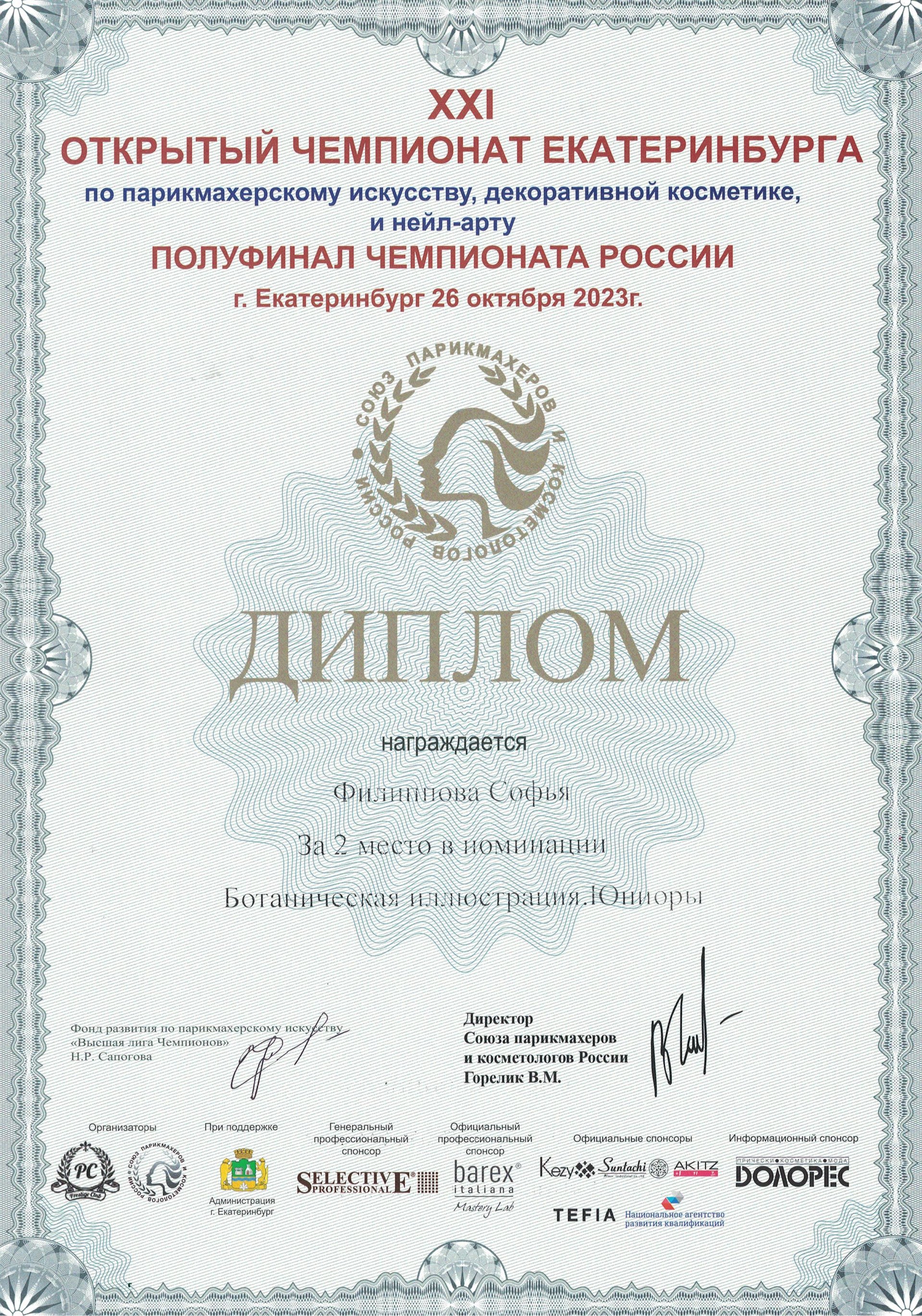 Филиппова София — 2 место.