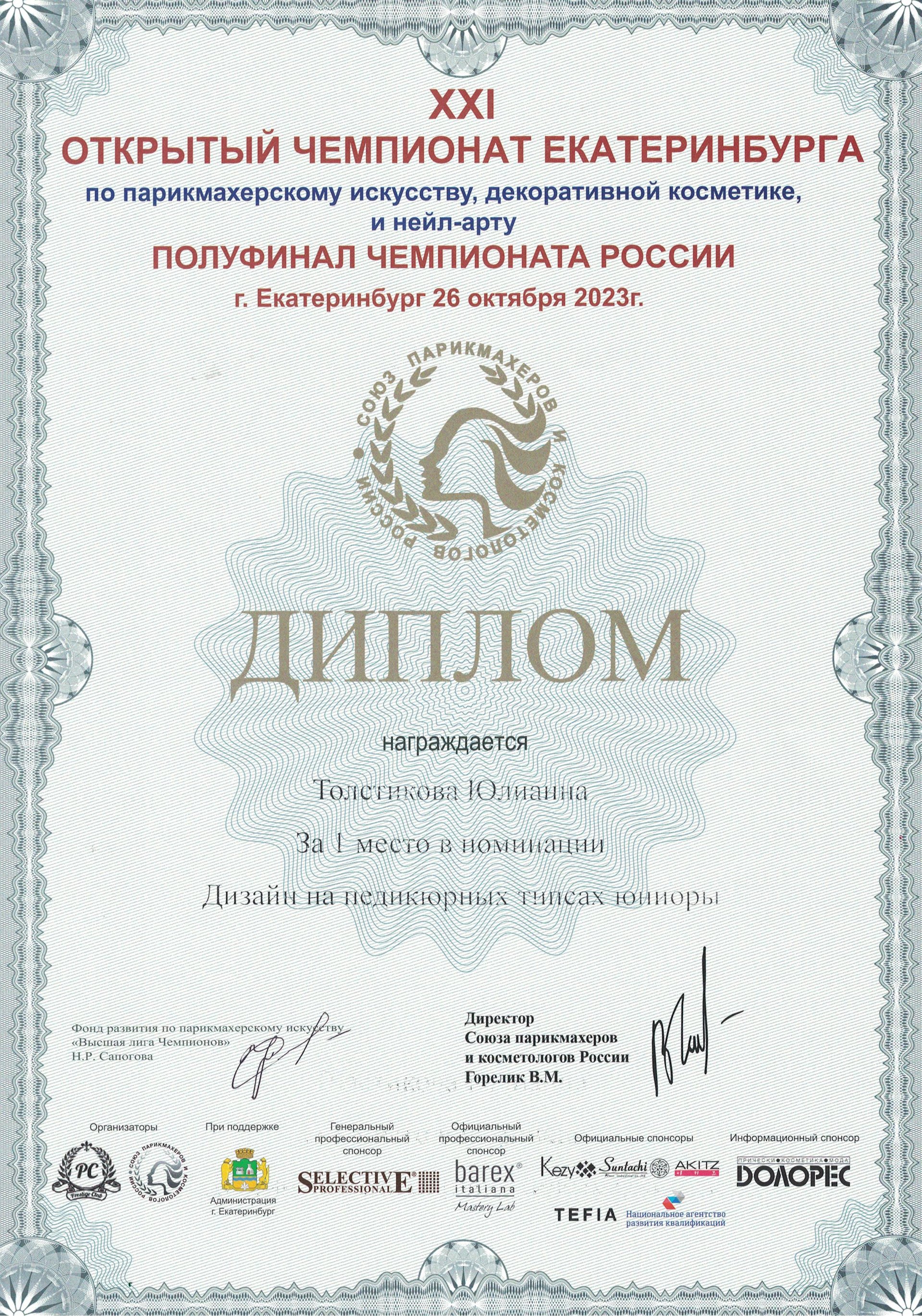 Толстикова Юлиана — 1 место.