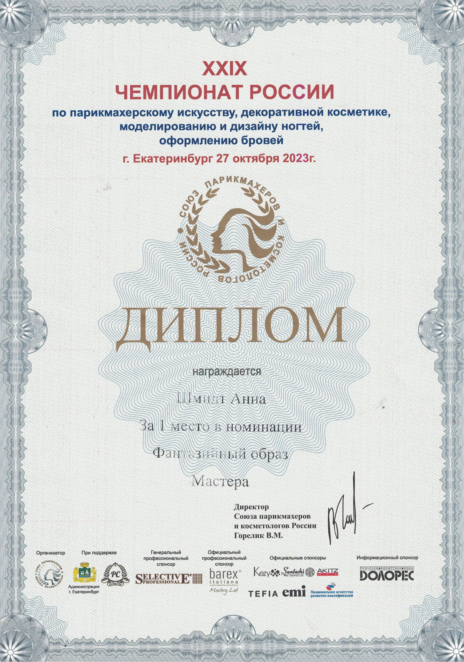 Шмидт Анна Владимировна — 1 место