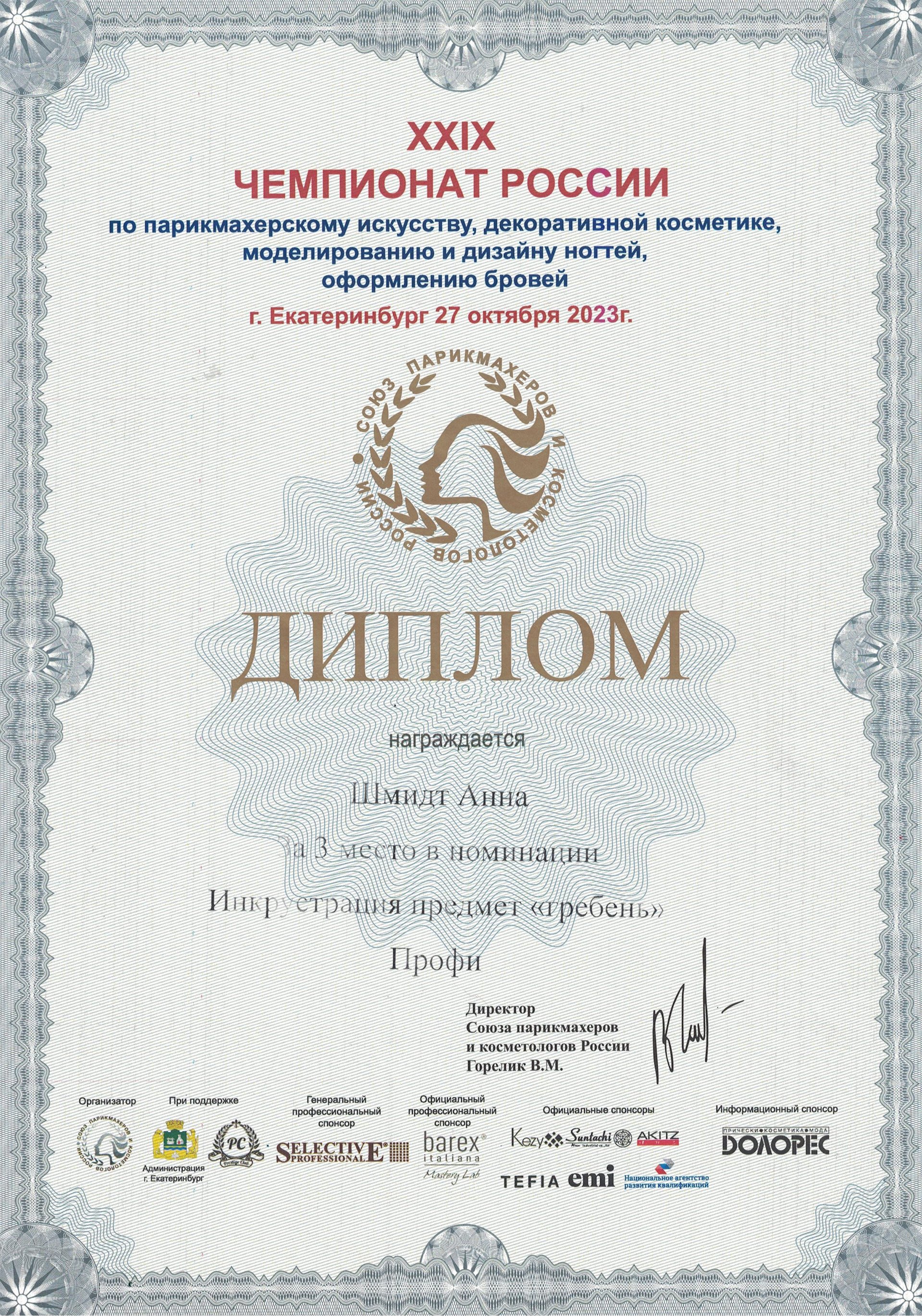 Шмидт Анна Владимировна — 3 место