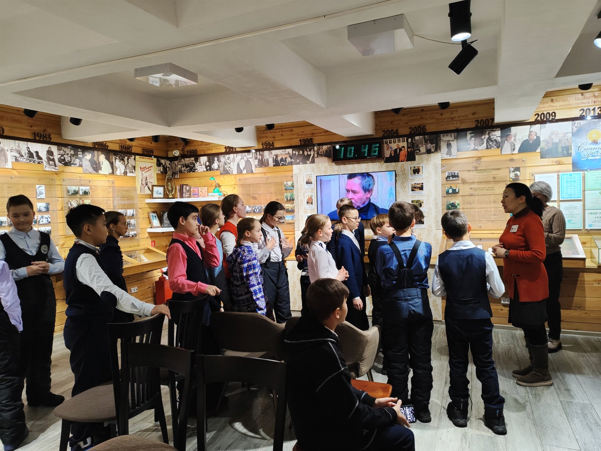 Большой интерес у учащихся вызвала библиотека: это те книги, которые окружали писателя, создавая атмосферу творчества! Тематика книг обусловлена, в первую очередь, интересом к истории и людям родного края - Сибири. Ребята поучаствовали в викторине на знание произведений русских писателей-классиков, а так же почитали отрывки из произведений Валентина Распутина «Мама куда-то ушла» и «Мужчины», и выбрали лучшего чтеца, которому был вручен приз!