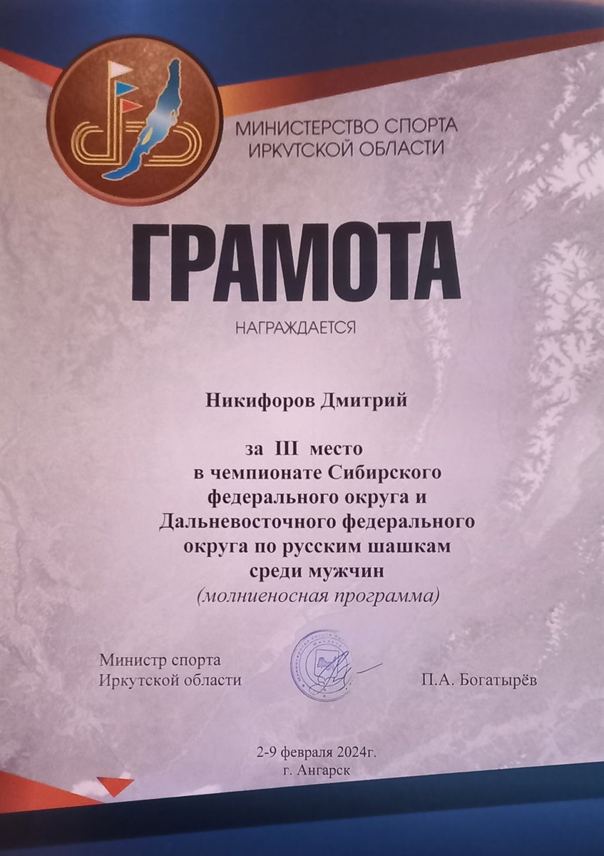 Педагог Дворца творчества, гроссмейстер Дмитрий Никифоров стал обладателем двух бронзовых медалей на чемпионате в молниеносной и классической программах.