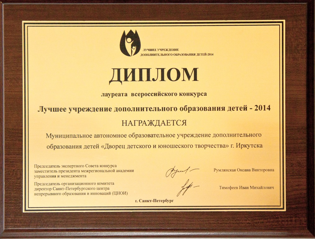 Результативность МАОУ ДО г. Иркутска «Дворец творчества»