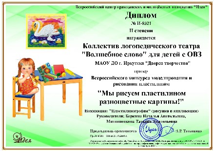 Для детей с ограниченными возможностями здоровья создано творческое объединение «Логопедический театр «Волшебное слово». В рамках творческого объединения реализуются адаптированные дополнительные общеразвивающие программы: