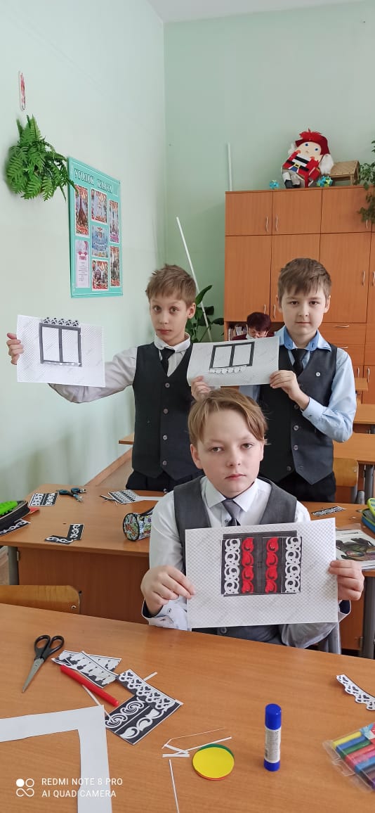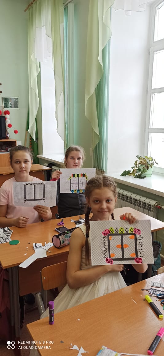 На одной из станций краеведы смогли попробовать себя в роли умельцев – украсить узорами окно, правда, не настоящее, а на бумаге. Но своей работой ребята остались довольны.