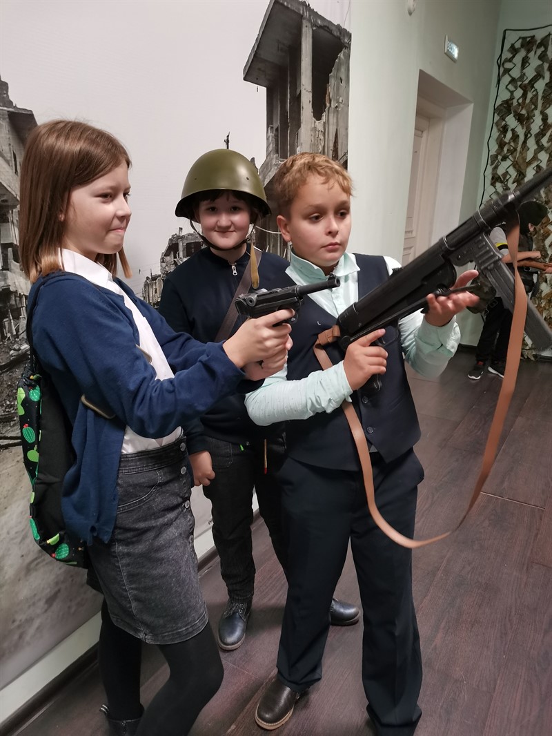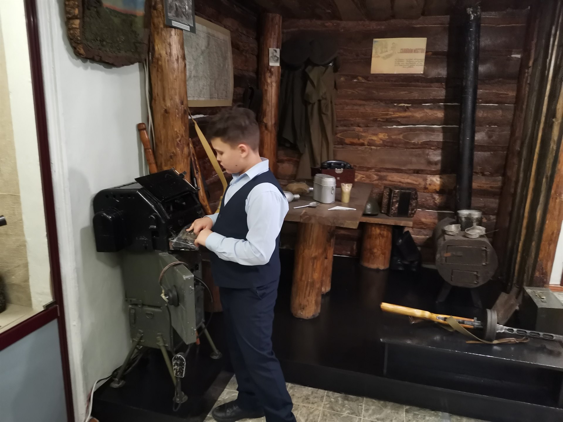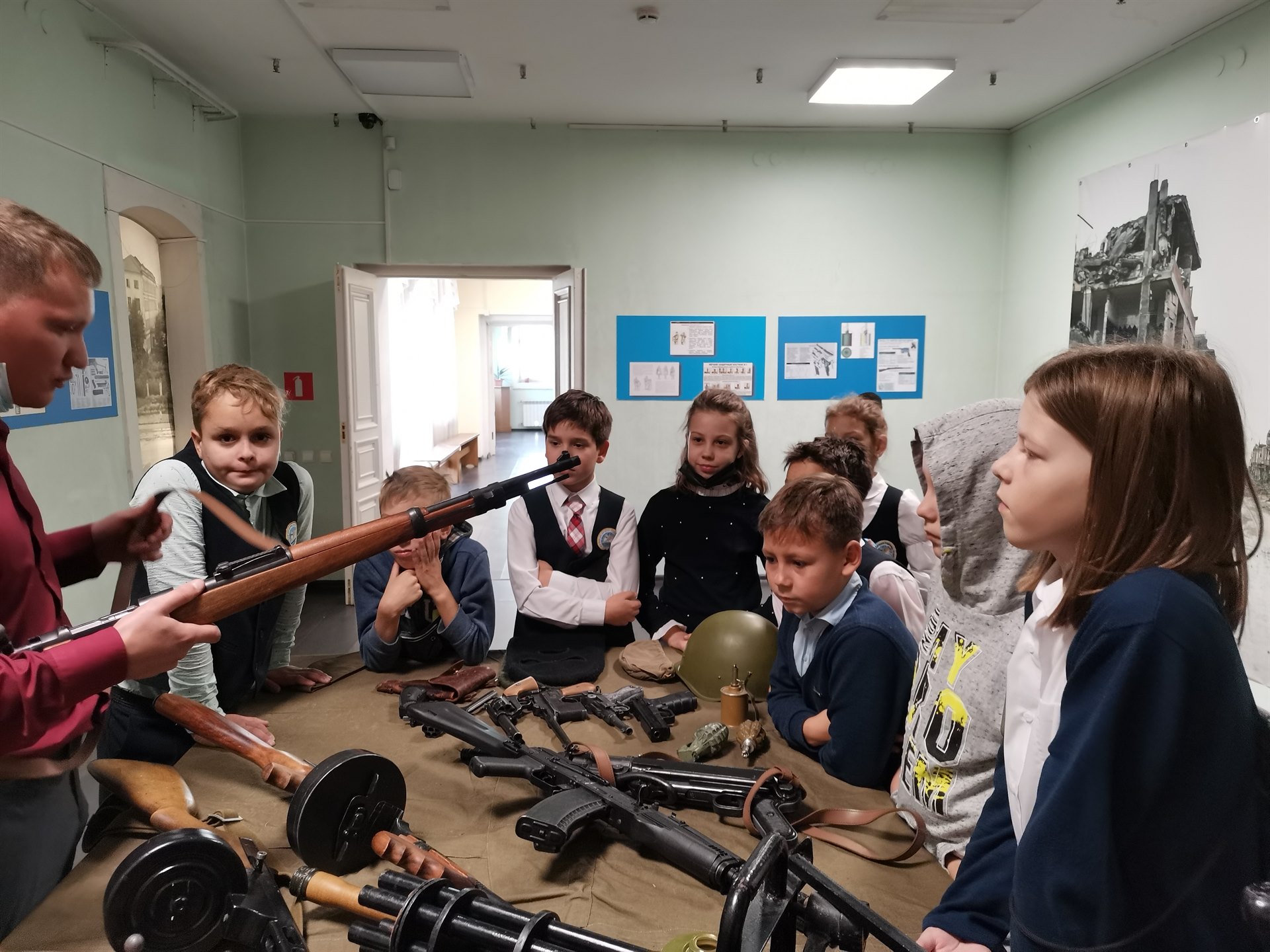Экскурсия в музей «Боевой славы» в Доме офицеров Иркутска началась для ребят творческого объединения «Я-Иркутянин» с посещения открытой площадки музея, оборудованной к 55-летию Победы советского народа в Великой Отечественной войне, на которой размещены образцы танковой и артиллерийской техники. В музее «Боевой славы», основанном в 1975 году, основная часть экспозиции посвящена Великой Отечественной войне 1941-1945гг. Ребята смогли увидеть подлинные экспонаты, фотодокументы, личные вещи, награды, рассказывающие о подвиге жителей Иркутской области на фронте, в тылу. В завершение экскурсии краеведы стали участниками интерактива – девочки-«медсестры» получили задание, перебинтовать «раненых бойцов». Под запись звуков войны – взрывов и стрельбы – ребята перенеслись в атмосферу военных лет и на какое-то мгновение ощутили себя участниками сражения.