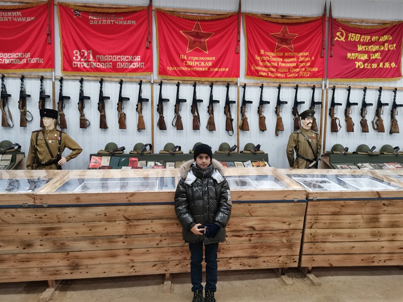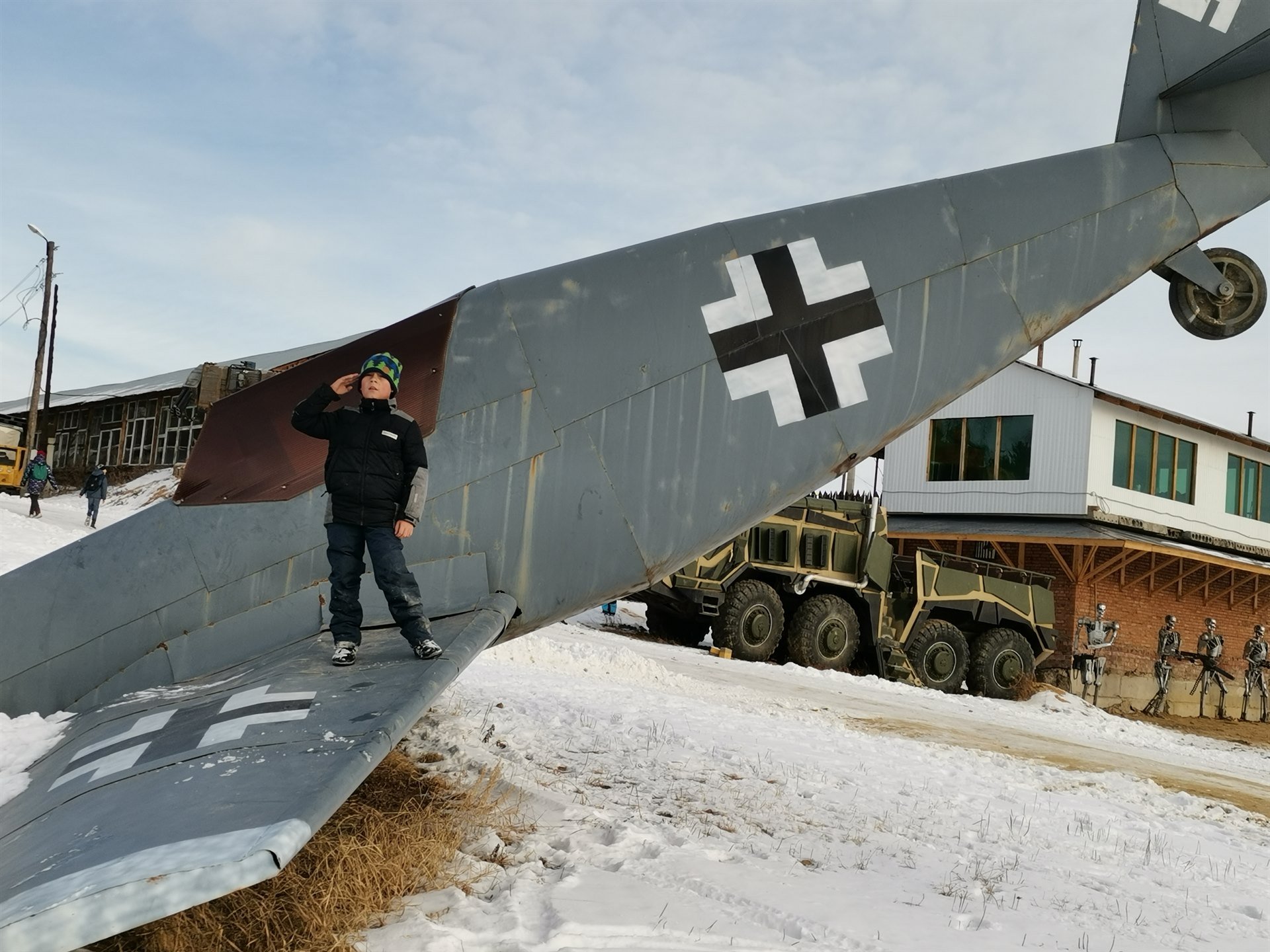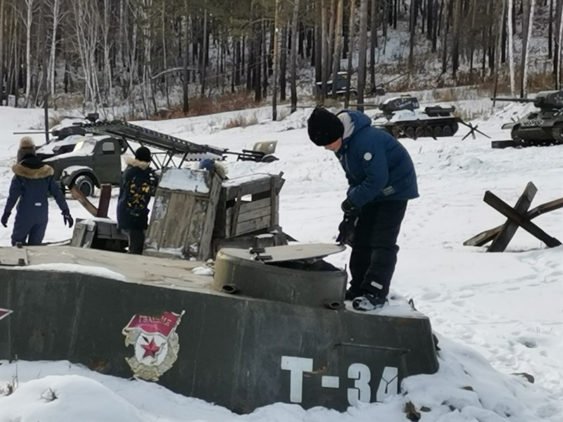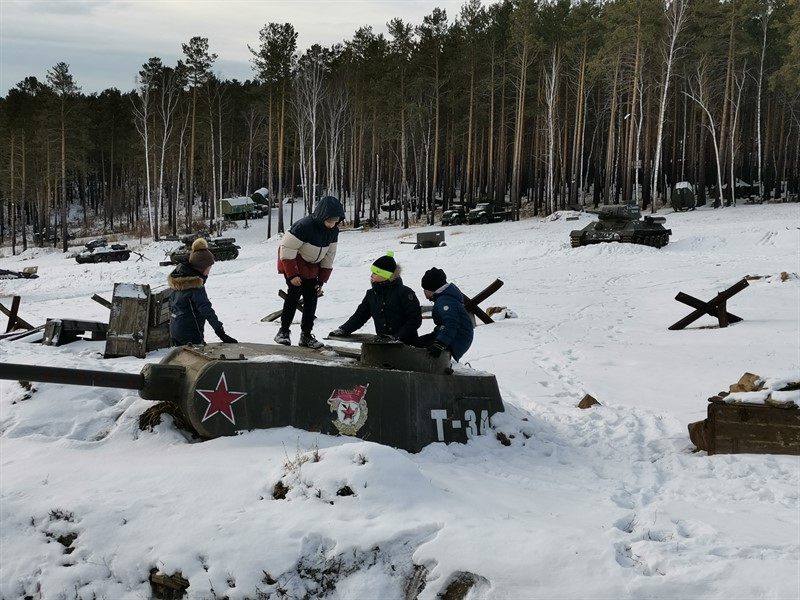 Работая над проектом по памятникам г. Иркутска, посвященным Великой Отечественной войне, краеведы познакомились с еще одним удивительным музеем, который рассказал о событиях второй мировой войны. Музей «На свалке» в Иркутске, а точнее Музей полигона твердых бытовых отходов — это единственный в мире музей, который находится на реальной свалке. Зал боевой славы открылся здесь 23 февраля 2021 года. Экспонаты для выставки ее создатель, директор полигона, собирал 15 лет. Это награды, знамена, штандарты, оружие, военная форма. В зале боевой славы представлены предметы, связанные не только с Великой отечественной войной, но также с двумя чеченскими и войной в Афганистане. Кроме того, для съемок фильма о Великой Отечественной войне «321-я сибирская» работники иркутского полигона ТБО создали несколько локаций, где теперь проходит празднование Дня Победы, а гости музея «На свалке» могут побывать в реальном окопе и почувствовать себя участниками сражения. На поле реконструировали сражение под Прохоровкой – оборонительной фазы Курской битвы. Площадку с этим видом основатель музея называет летней. Так как мы были в музее зимой, танки, наши Т-34 и немецкие «тигры», пушки и самолёты-штурмовики укрыты ровным слоем снега, отчего их не так просто рассмотреть. Но нам это удалось!