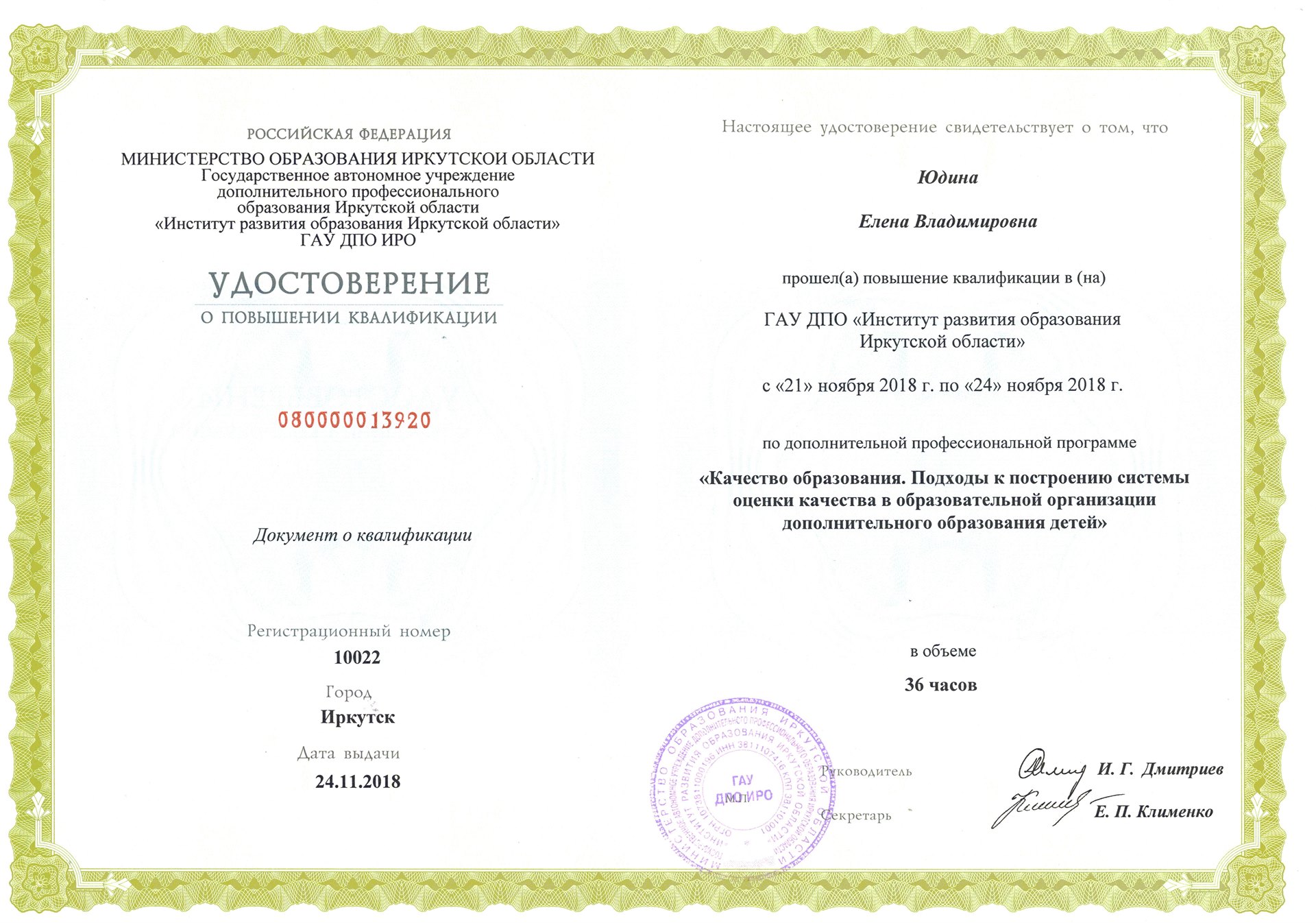 Повышение квалификации педагогического работника