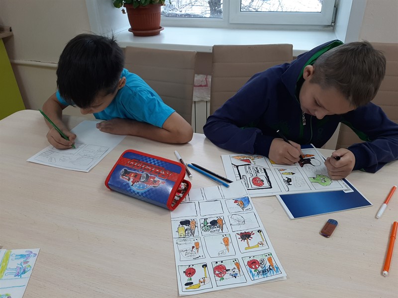 Учащиеся знакомятся с основными приемами создания комиксов и могут проявить себя в качестве художника, контуровщика, колориста, сценариста, что в дальнейшем, может способствовать профессиональному самоопределению.