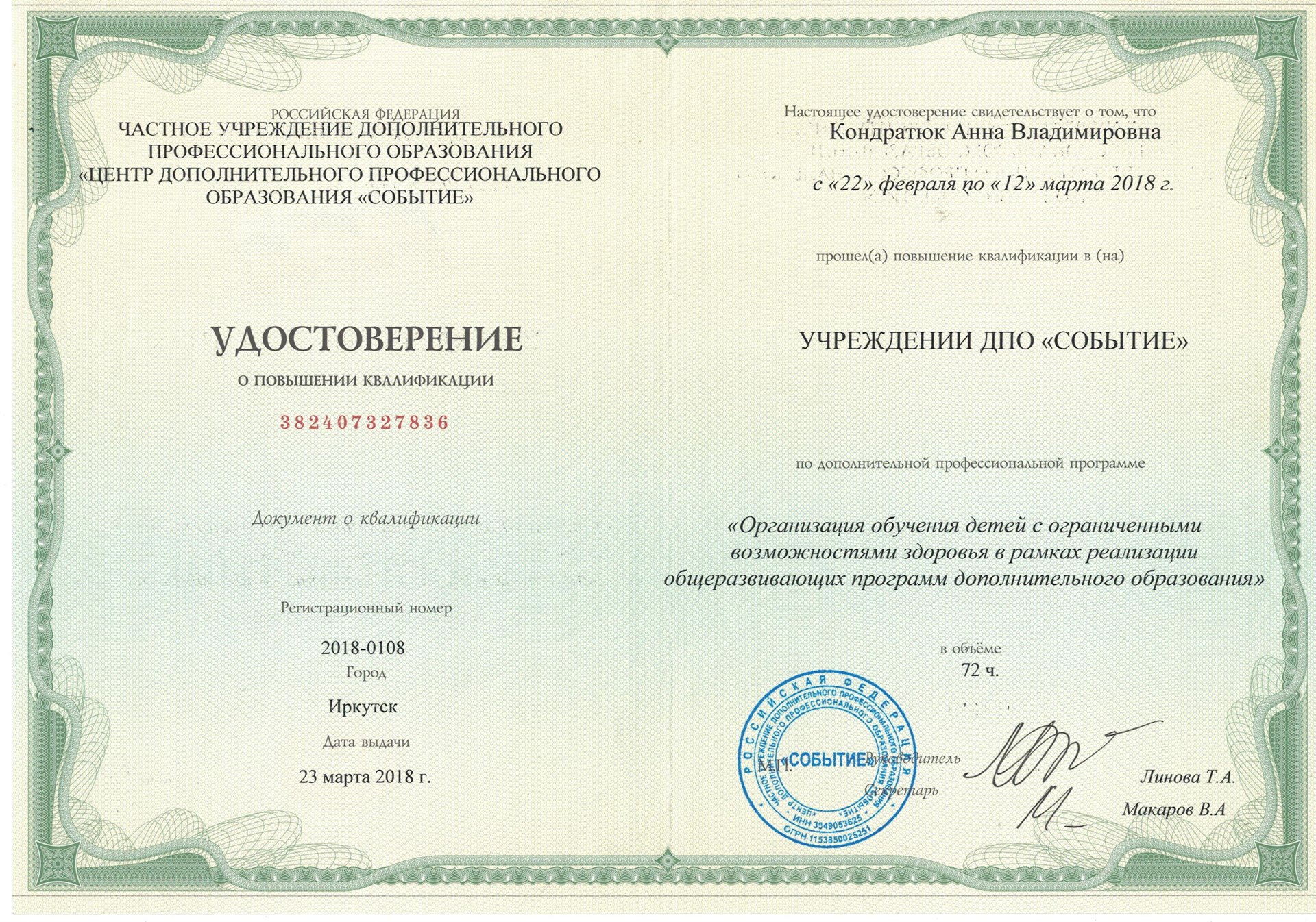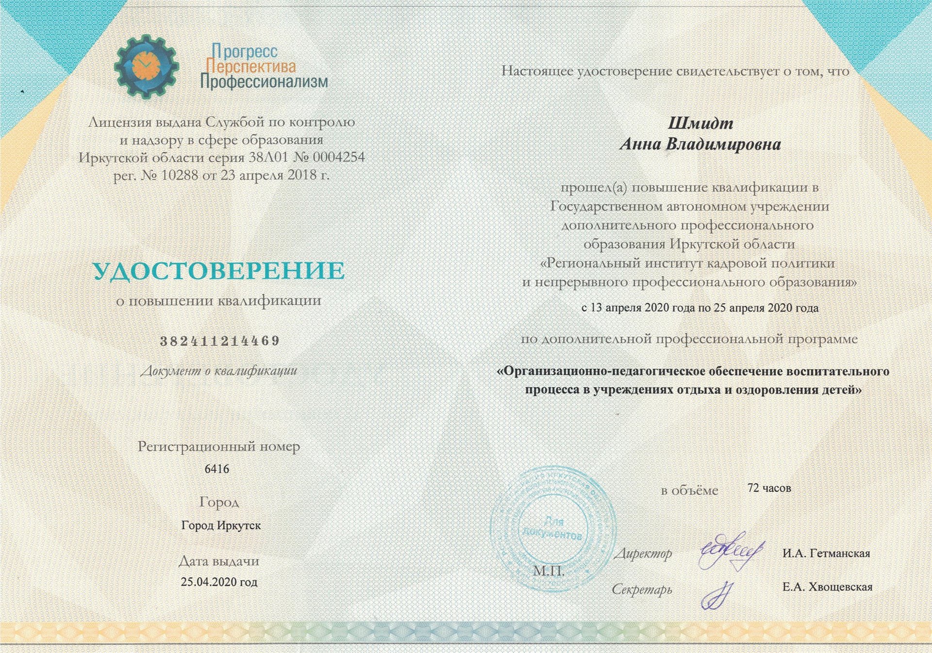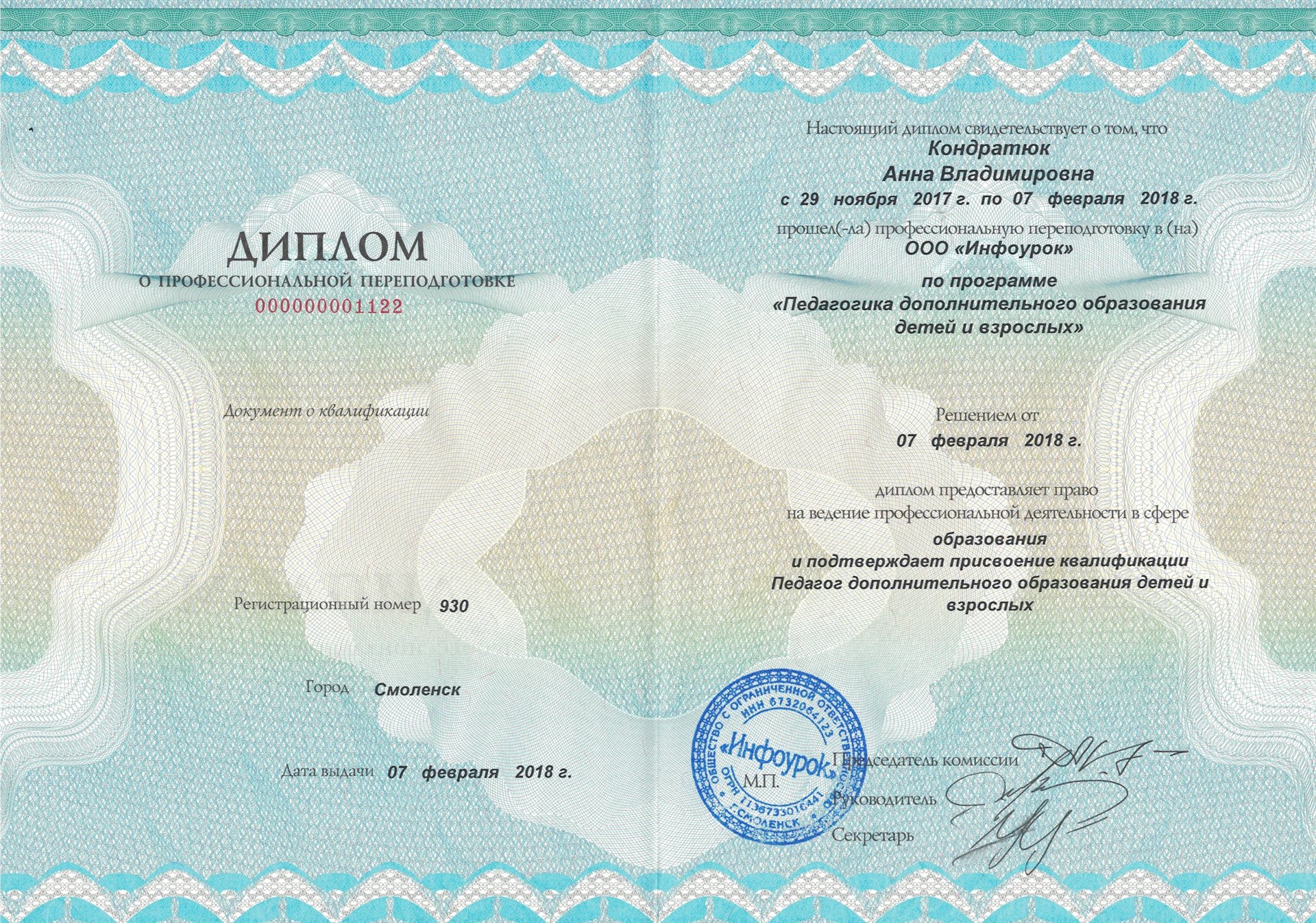Повышение квалификации педагогического работника