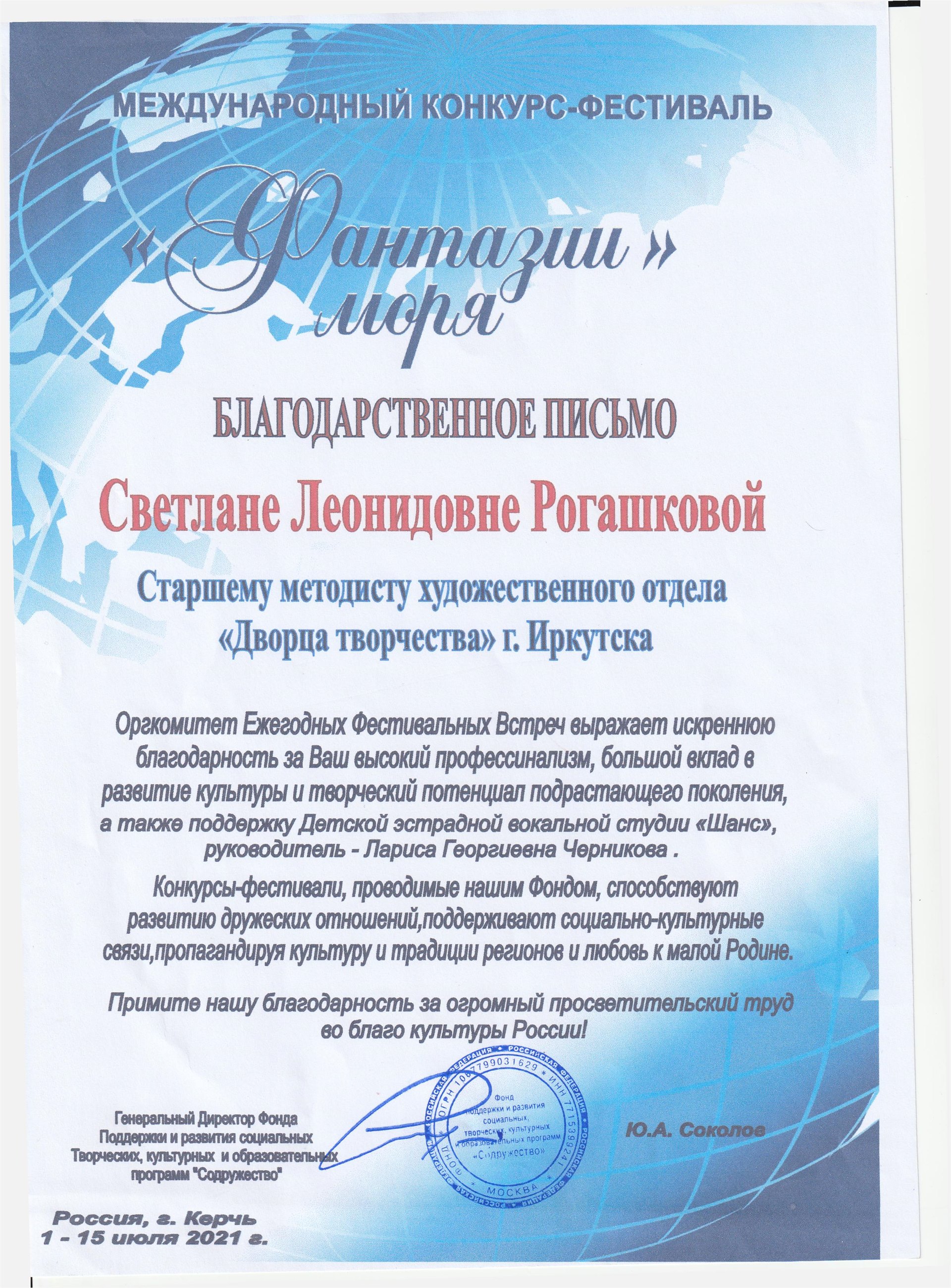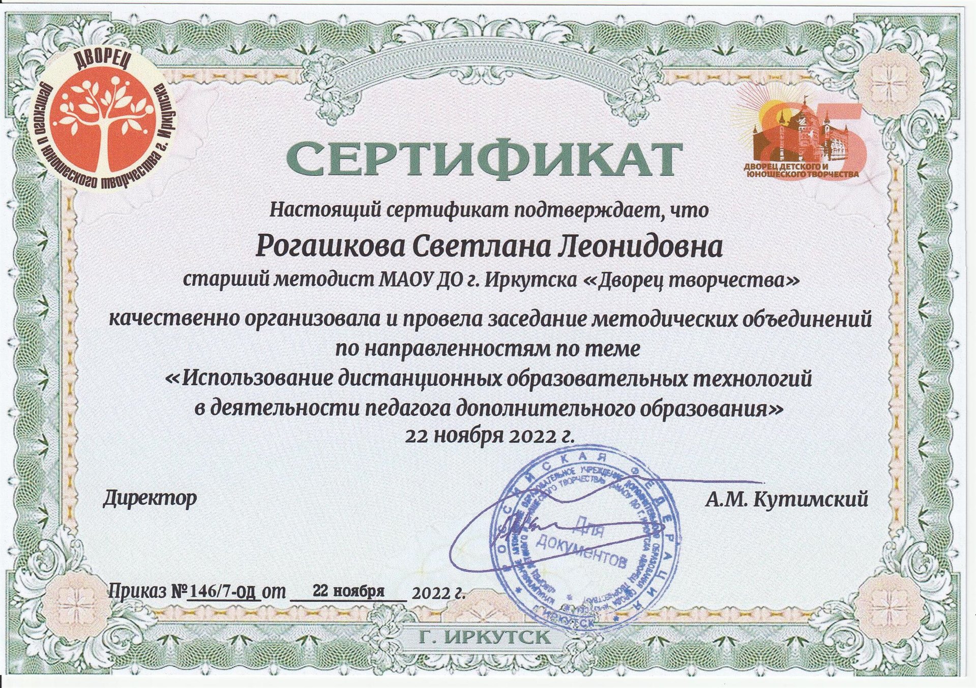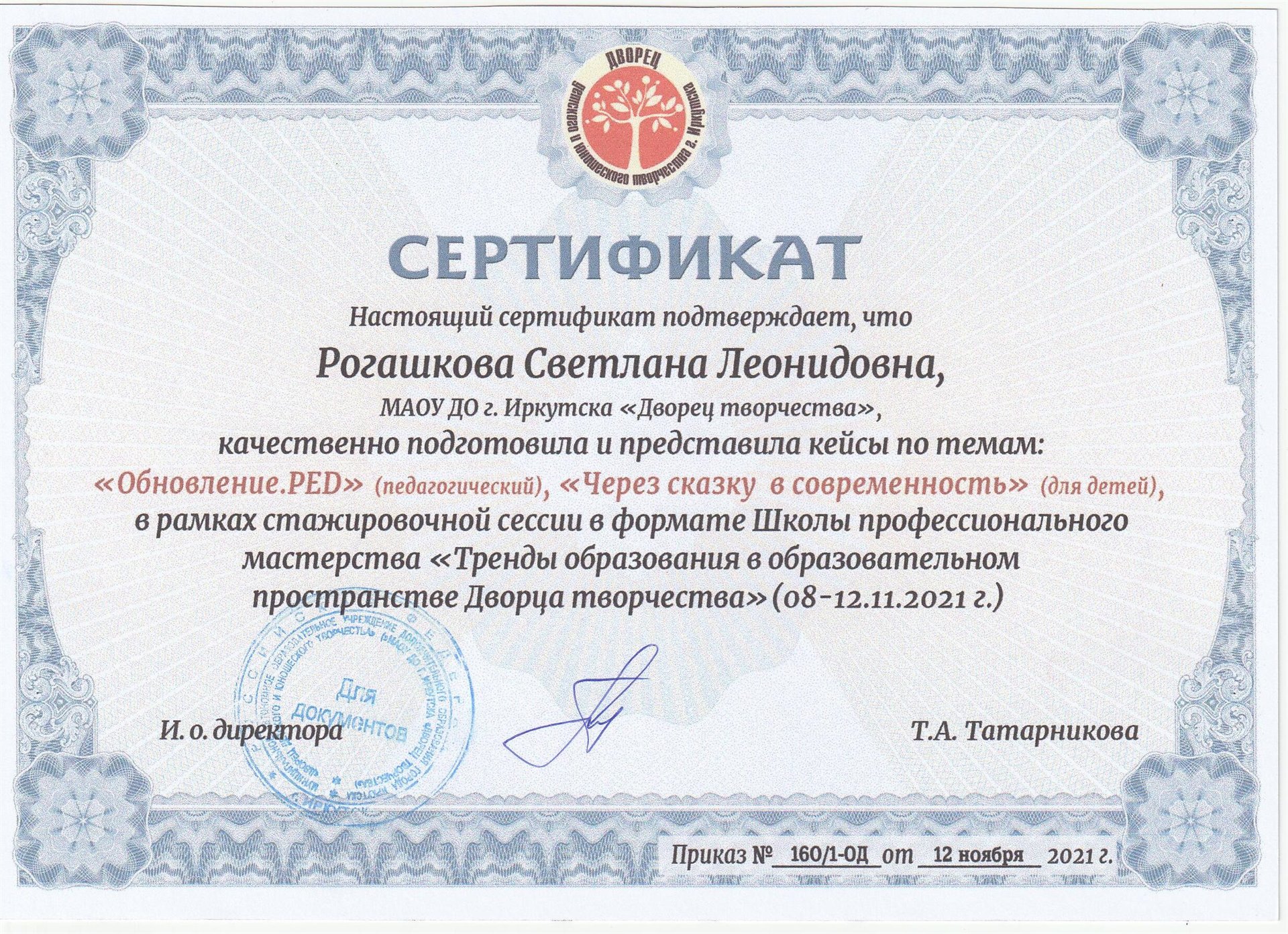 Курсы повышения квалификации «Методика и технология работы педагога дополнительного образования в современных условия»; «Психолого-педагогические основы образовательной деятельности» |