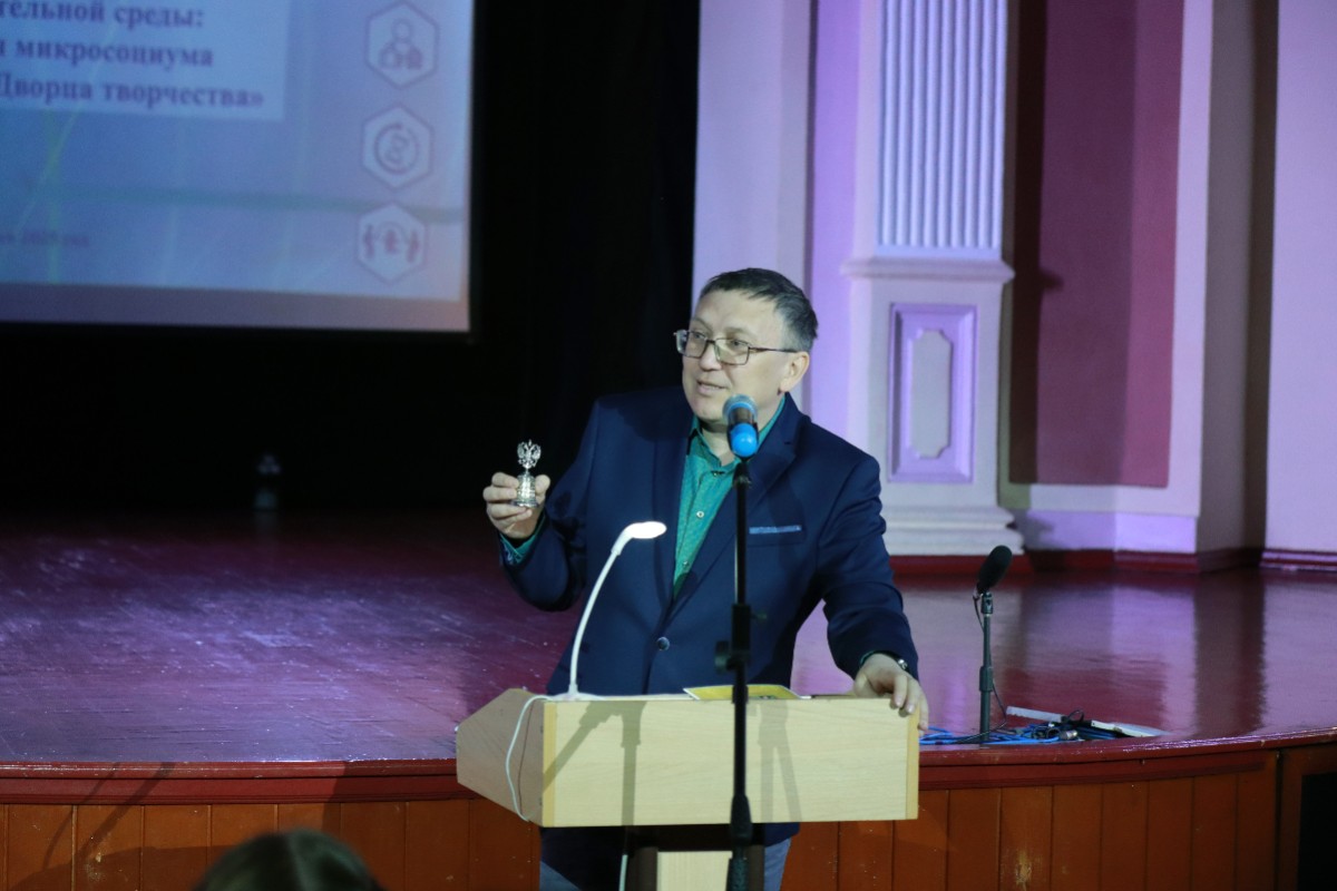 Колокольчик, подаренный на Всероссийской конференции в сентябре прошлого года в Российской академии образования, дал старт 19 мая 2025 года Дворцовской научно-практической конференции «Преобразование образовательной и воспитательной среды: интеграция микросоциума в экосистему Дворца творчества» в рамках федерального проекта «Формирование самосознания и внутренней позиции личности обучающегося через моделирование воспитательного пространства посредством интеграции потенциала микросоциума». Программа конференции включила лучшие доклады по обобщению опыта работы по формированию структурных звеньев самосознания личности по концепции В.С. Мухиной.