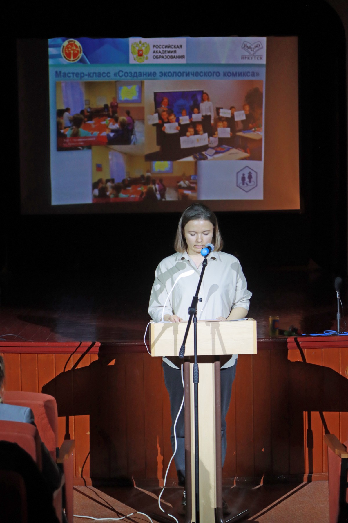 - Бисерова Полина Юрьевна, педагог дополнительного образования МАОУ ДО г. Иркутска «Дворец творчества», доклад на тему «Создание экологического комикса как способ формирования структурного звена самосознания «Психологическое пространство»;