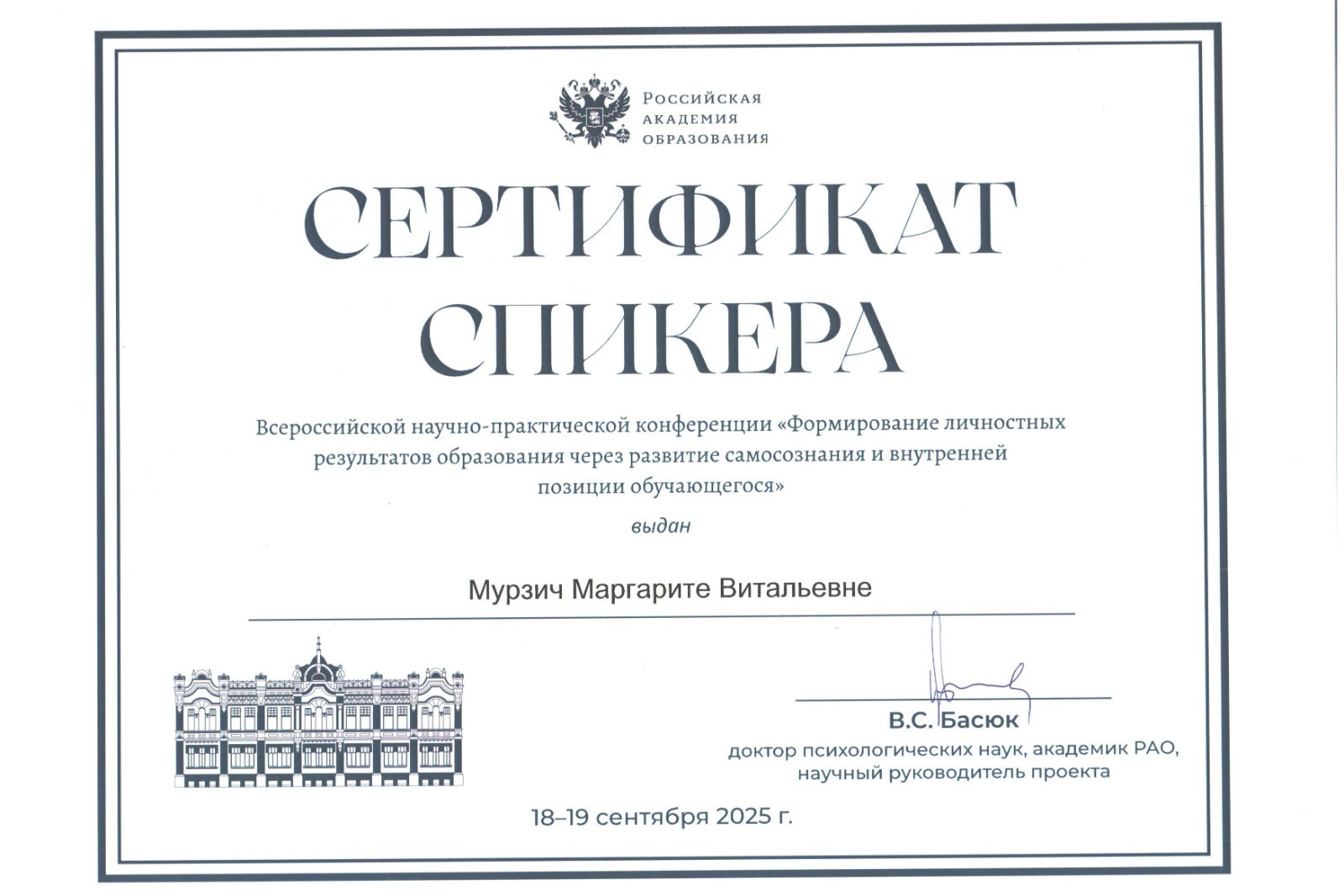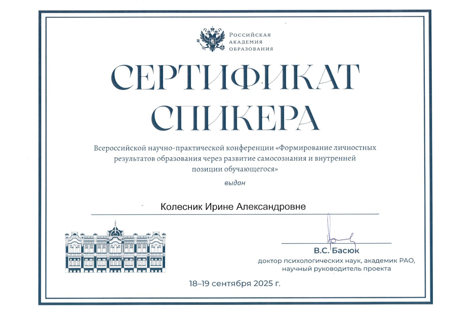 18-19 сентября 2025 г., в Российской академии образования стартовала Всероссийская научно-практическая конференция «Формирование личностных результатов образования через развитие самосознания и внутренней позиции обучающегося», в рамках реализации инновационного проекта РАО «Формирование самосознания и внутренней позиции личности обучающегося через моделирование воспитательного пространства посредством интеграции потенциала микросоциума».