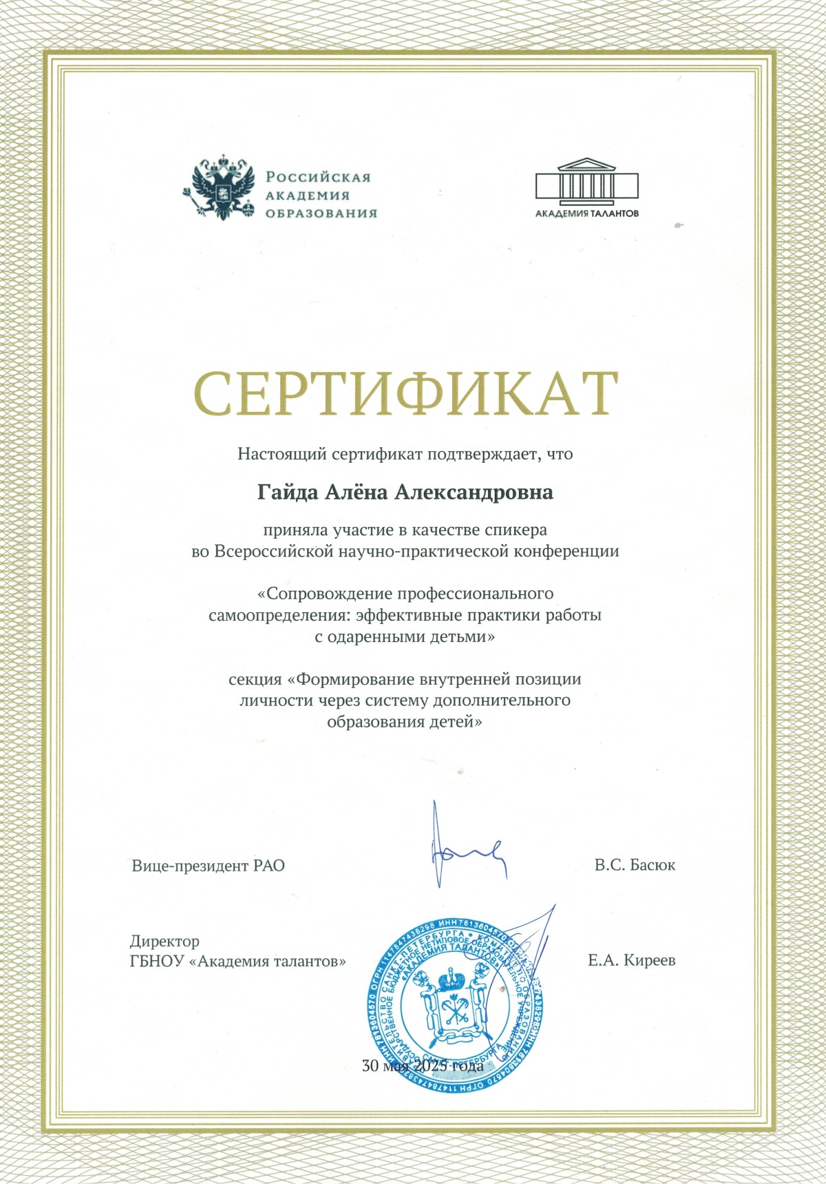 Всероссийская научно-практическая конференция «Сопровождение профессионального самоопределения: эффективные практики работы с одарёнными детьми», 29-30 мая 2025 г., г. Санкт-Петербург