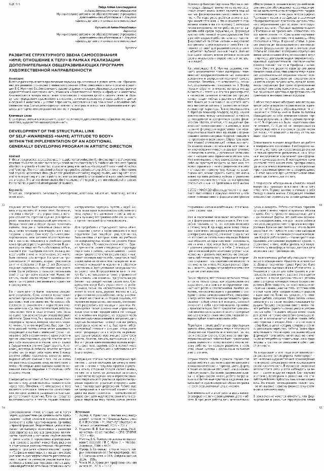 Развитие структурного звена самосознания ««Имя; отношение к телу» в рамках реализации дополнительных общеразвивающих программ художественной направленности» Гайда А. А., Кутимский А. М.