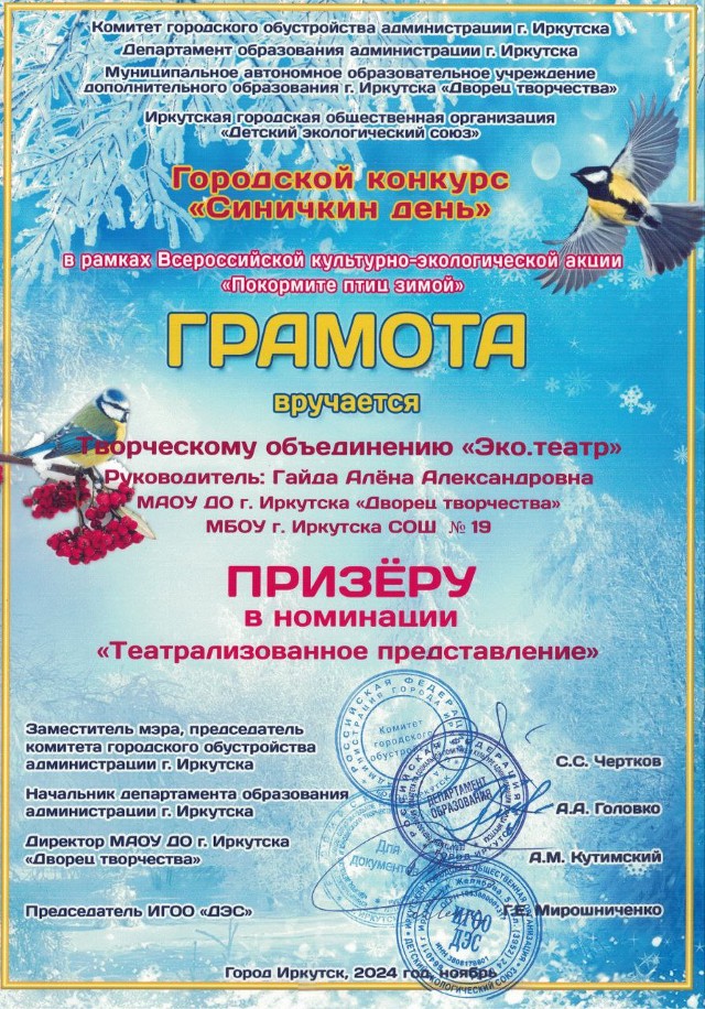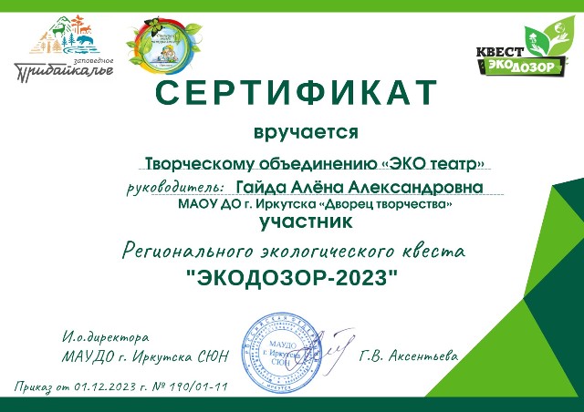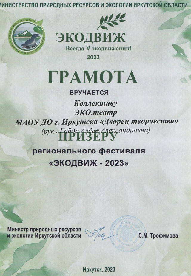 Сведения о качестве реализации ДОП "ЭКО театр"